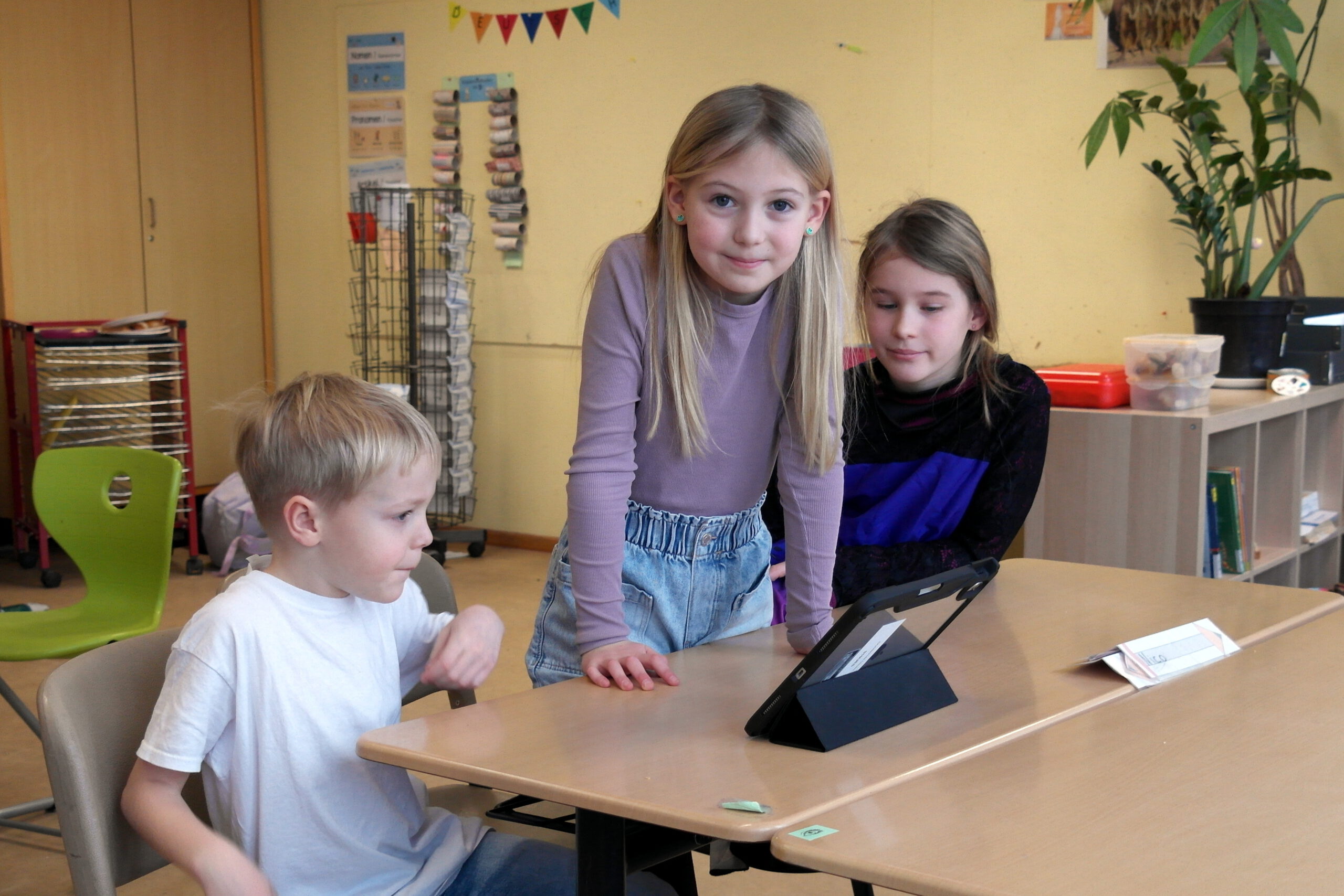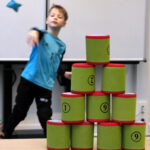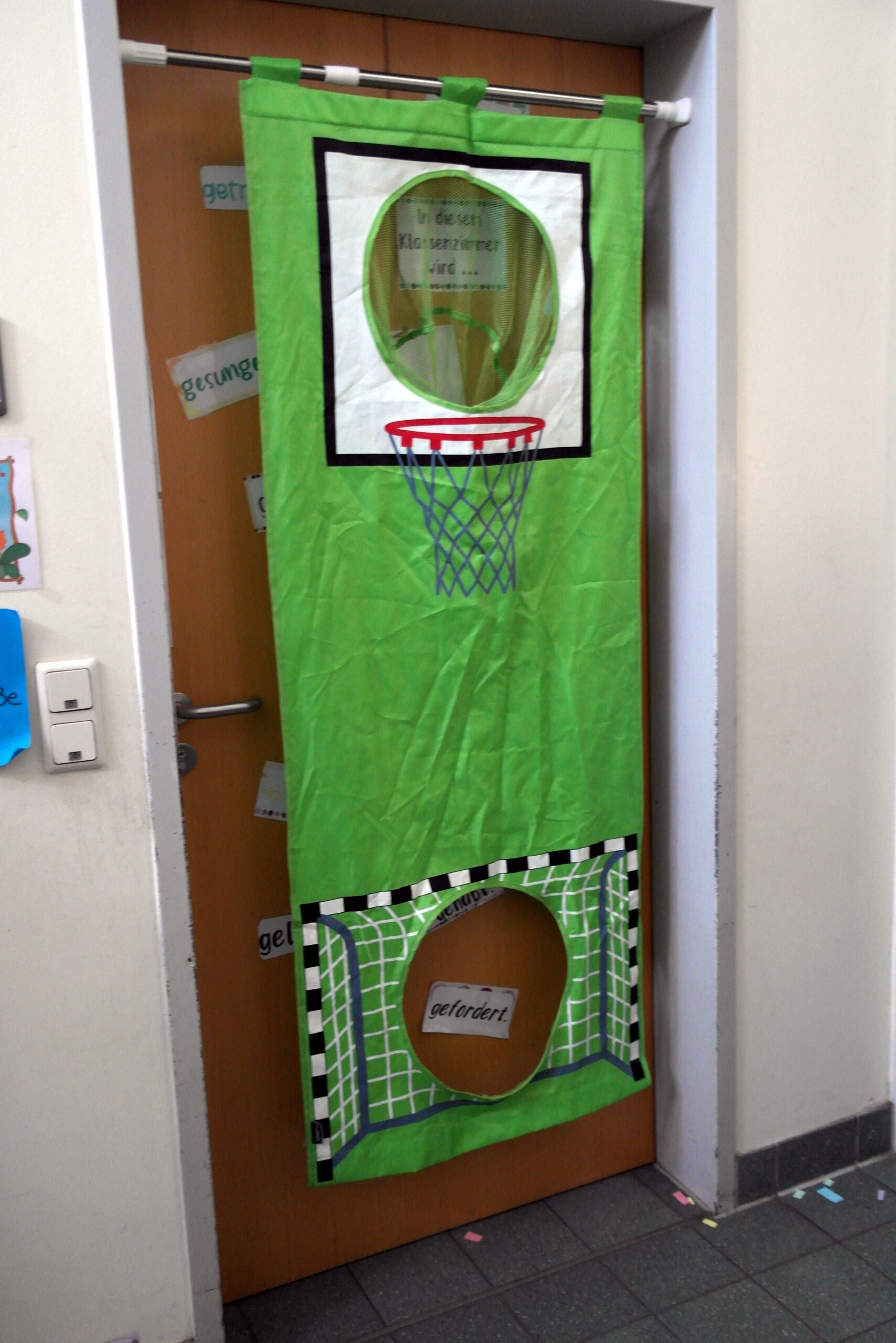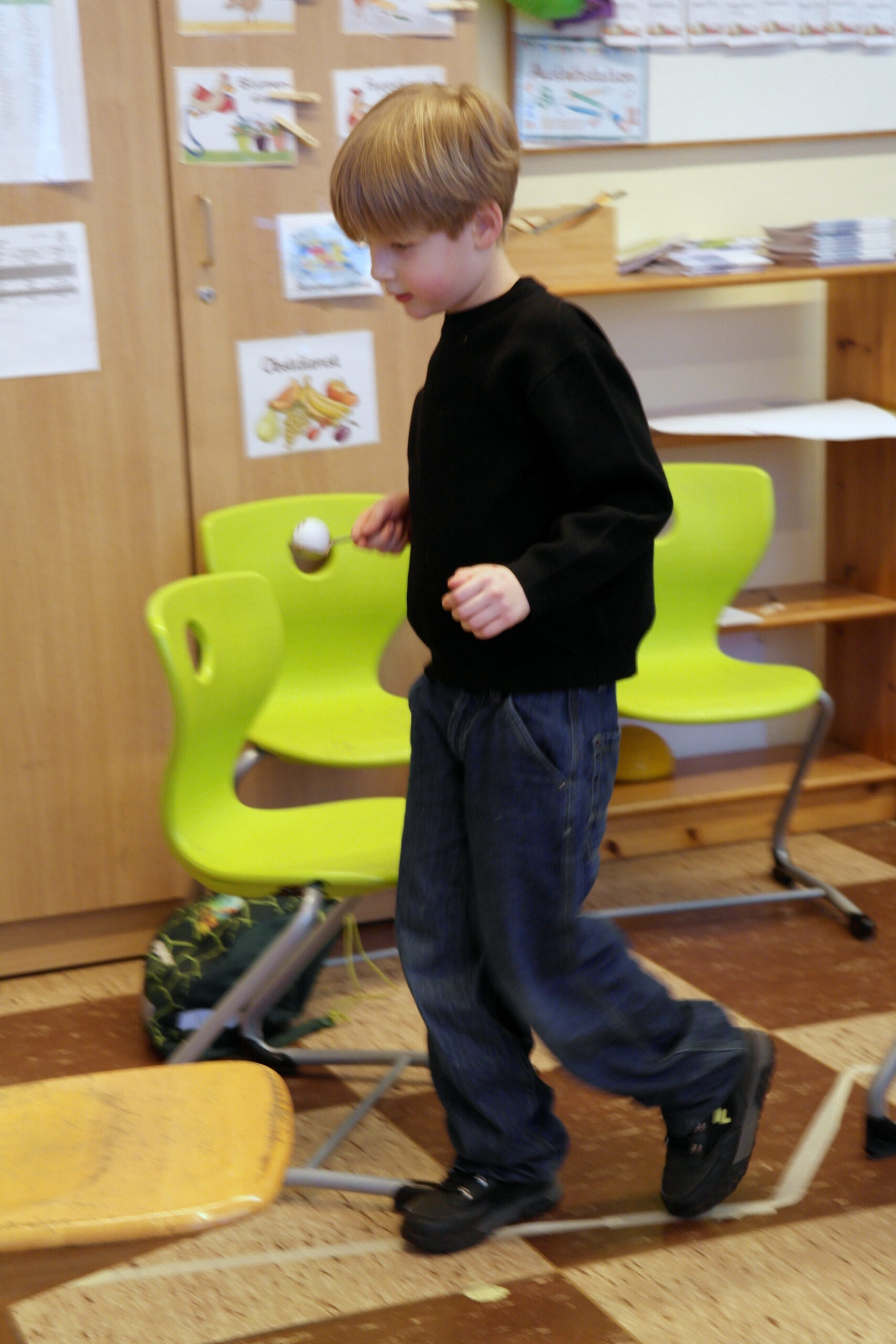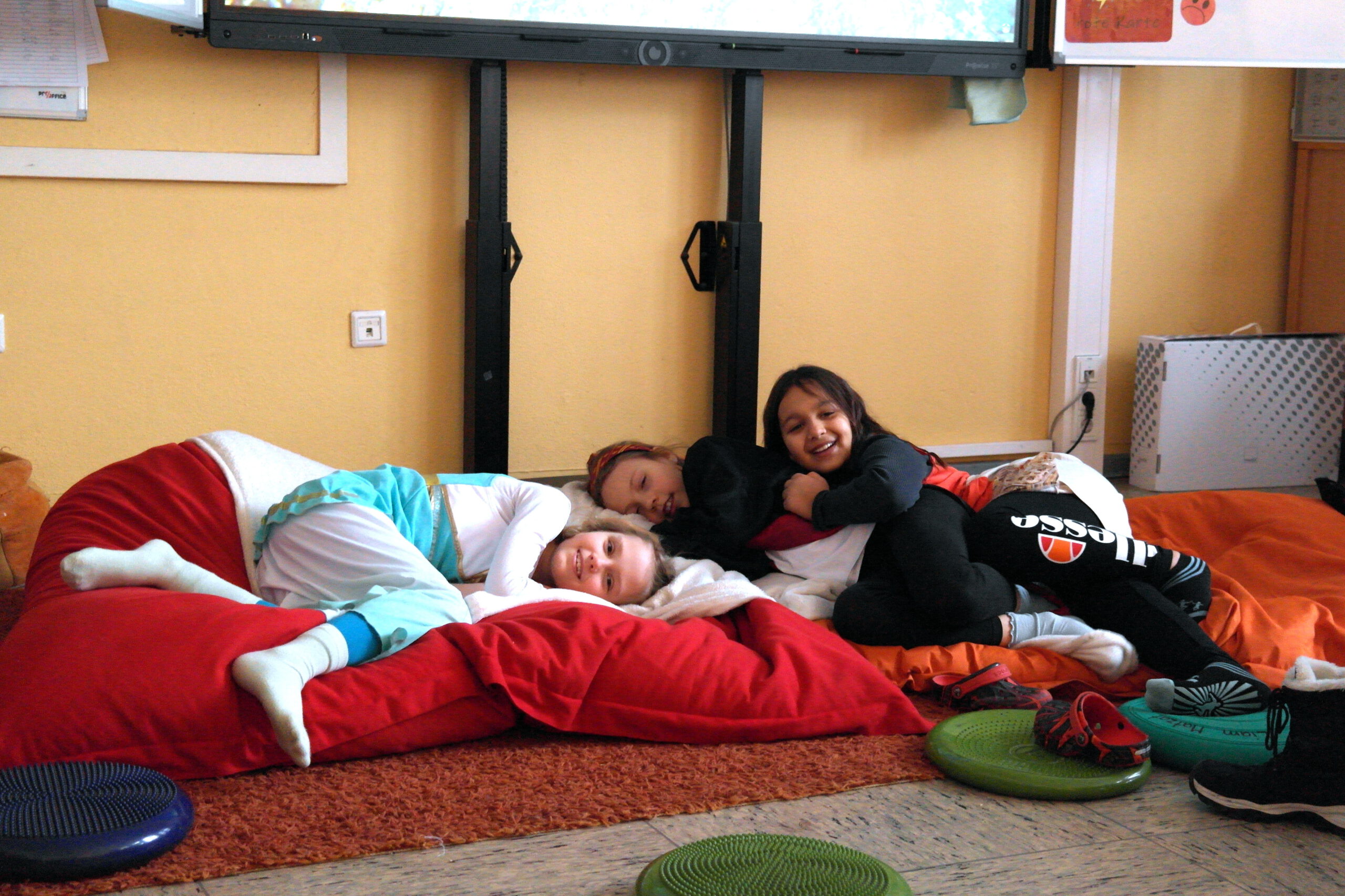 Es gab ein Buffet und lustige Spiele. In jedem Klassenraum war eine Station vorbereitet. In der Sporthalle war Disko.