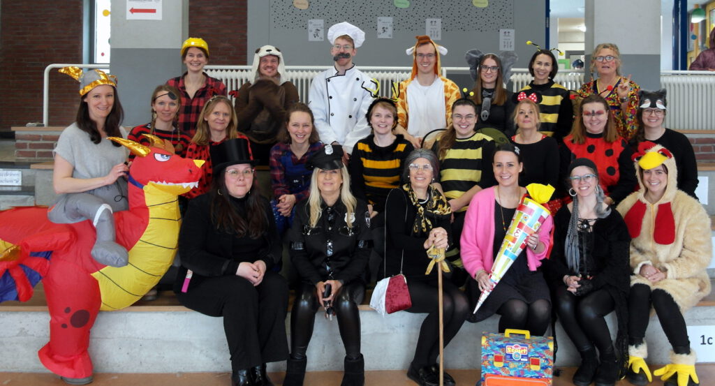 Natürlich haben sich auch die Lehrer und Lehrerinnen verkleidet.